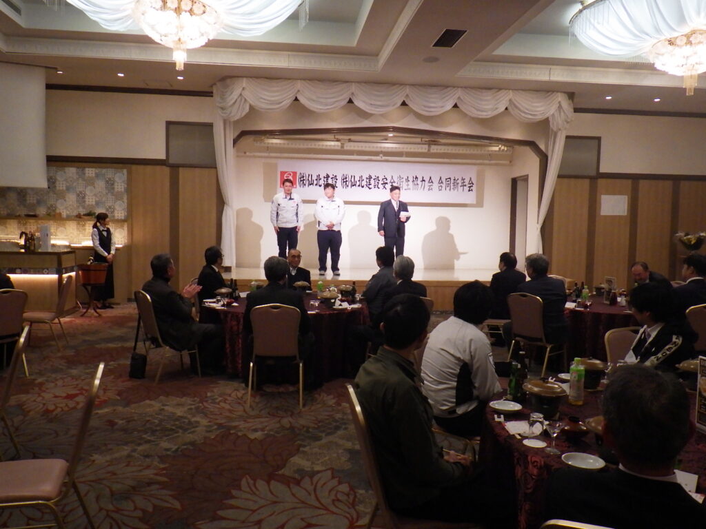 去る令和8年2月6日にアインパルラ浦島におきまして仙北建設並びに仙北建設安全衛生協力会の安全祈願祭・講習会・新年会を開催しました。令和8年も安全第一を優先に役員社員、協力会会員一丸となって邁進してまいります。新年会では余興もあり楽しい時間となりました。