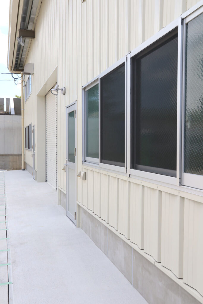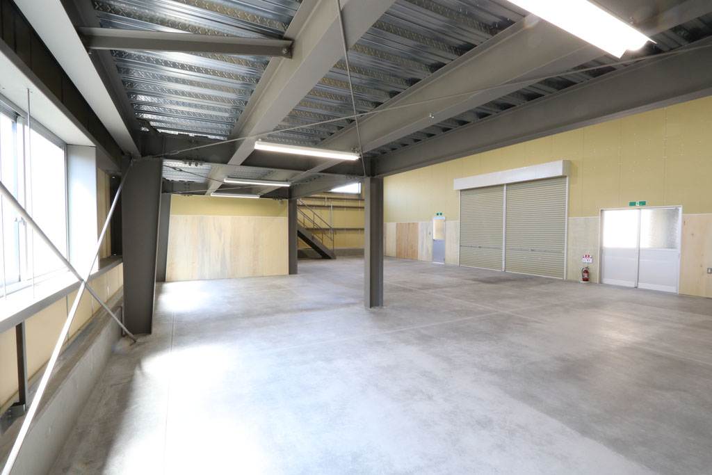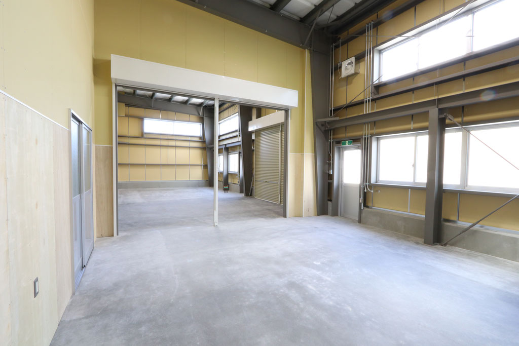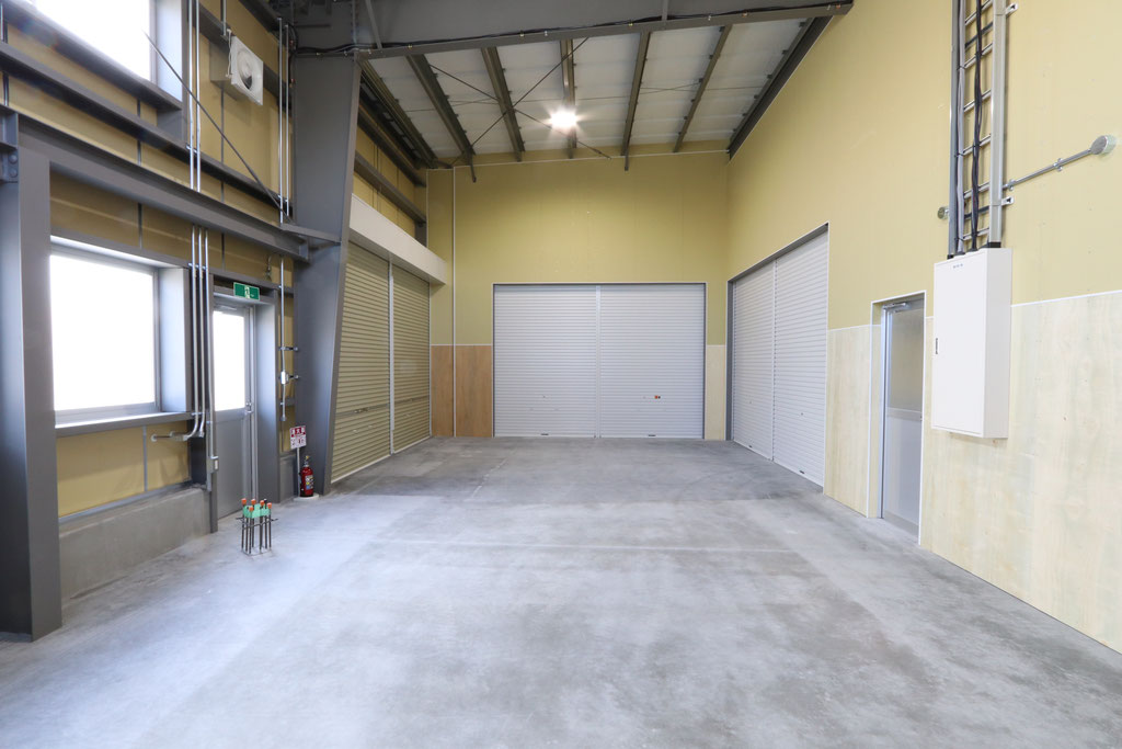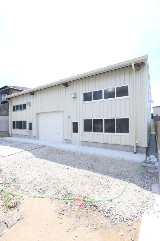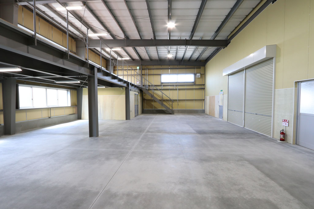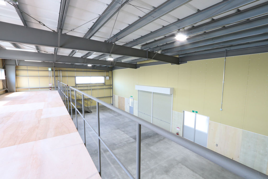 延床面積約365㎡で、中2階を設け効率の良い倉庫の完成となりました。