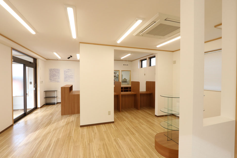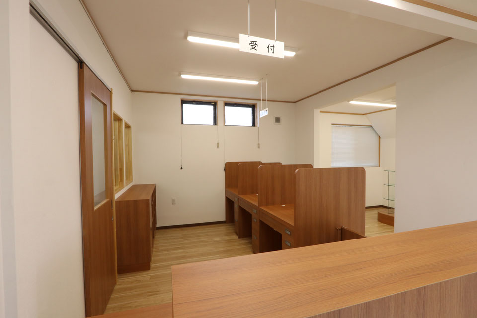 患者様のスペースを最大限に確保し、安心感を与えてくれる木目で、